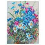 Картина стразами (алмазная мозаика) 30х40 см, ОСТРОВ СОКРОВИЩ "Васильки и ромашки", без подрамника, 662573