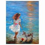 Картина стразами (алмазная мозаика) 40х50 см, ОСТРОВ СОКРОВИЩ "Девочка с собачкой", без подрамника, 662588