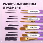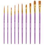 Кисти синтетика BRAUBERG, НАБОР 10 шт., фиолетовые (Круглые; Овальные; Плоские; Лайнеры), 201029