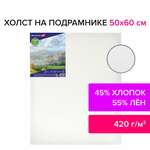 Холст на подрамнике BRAUBERG ART CLASSIC, 50х60 см, 420 г/м2, 45% хлопок 55% лен, среднее зерно, 191659