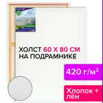 Холст на подрамнике BRAUBERG ART CLASSIC, 60х80 см, 420 г/м2, 45% хлопок 55% лен, среднее зерно, 191660