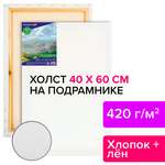 Холст на подрамнике BRAUBERG ART CLASSIC, 40х60 см, 420 г/м2, 45% хлопок 55% лен, среднее зерно, 191658