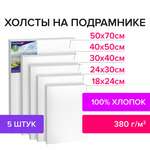 Холсты на подрамнике BRAUBERG ART CLASSIC, НАБОР 5шт, грунтованные, 100%хлопок, среднее зерно,190650