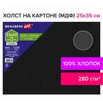 Холст черный на картоне (МДФ), 25х35 см, грунт, хлопок, мелкое зерно, BRAUBERG ART CLASSIC, 191678