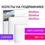 Холсты на подрамнике BRAUBERG ART CLASSIC, НАБОР 3шт, 380 г/м, 100%хлопок, среднее зерно, 191655