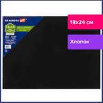 Холст черный на картоне (МДФ), 18х24 см, грунт, хлопок, мелкое зерно, BRAUBERG ART CLASSIC, 191677