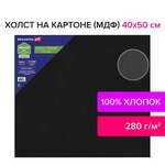 Холст черный на картоне (МДФ), 40х50 см, грунт, хлопок, мелкое зерно, BRAUBERG ART CLASSIC, 191680