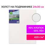 Холст на подрамнике BRAUBERG ART CLASSIC, 24х30см, грунт., 45%хлоп., 55%лен, среднее зерно, 190635