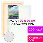 Холст на подрамнике BRAUBERG ART CLASSIC, 30х50 см, 420 г/м2, 45% хлопок 55% лен, среднее зерно, 191657