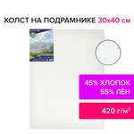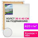 Холст на подрамнике BRAUBERG ART CLASSIC, 30х40 см, 420 г/м2, 45% хлопок 55% лен, среднее зерно, 191656