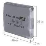 Ластик-клячка художественный BRAUBERG ART "CLASSIC" 40х36х10 мм, супермягкий, серый, 228064