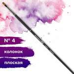 Кисть художественная проф. BRAUBERG ART CLASSIC, колонок, плоская, № 4, длинная ручка, 200937