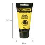Краска акриловая художественная BRAUBERG ART CLASSIC, туба 75мл, ЖЕЛТАЯ СРЕДНЯЯ, 191076