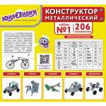 Конструктор металлический ЮНЛАНДИЯ "Для уроков труда №1", развивающий, 206 элементов, 104679