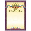 Грамота А4, мелованный картон, конгрев, тиснение фольгой, пурпурная, BRAUBERG, 126547