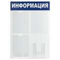 Доска-стенд "Информация" 52х78 см, 3 плоских кармана А4 + объемный карман А5, BRAUBERG, 291011