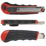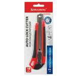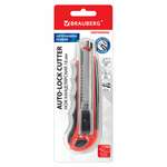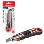 Нож канцелярский 18 мм BRAUBERG "Universal", 3 лезвия в комплекте, автофиксатор, черно-красный, 271351