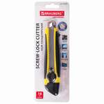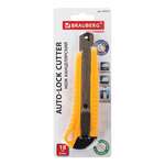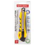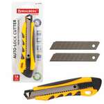 Нож канцелярский 18 мм BRAUBERG "Standard", 3 лезвия в комплекте, автофиксатор, корпус ассорти, 230918