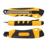 Нож канцелярский 18 мм BRAUBERG "Universal", 3 лезвия в комплекте, автофиксатор, резиновые вставки, 230919