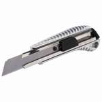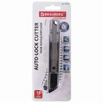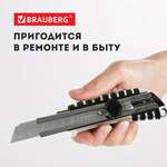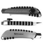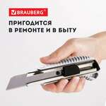 Нож канцелярский 18 мм BRAUBERG "Metallic", металлический корпус (рифленый), автофиксатор, блистер, 235401