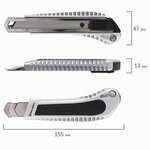 Нож канцелярский 18 мм BRAUBERG "Metallic", роликовый фиксатор, резиновые вставки, металл, 237159