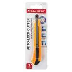 Нож канцелярский 9 мм BRAUBERG "Standard", автофиксатор, корпус ассорти, блистер, 230916