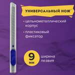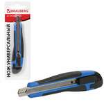 Нож канцелярский 9 мм BRAUBERG "Universal", автофиксатор, цвет ассорти, резиновые вставки, блистер, 236970