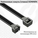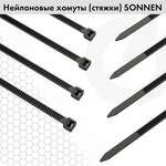Стяжки (хомуты) нейлоновые сверхпрочные НАБОР 150 шт. (2,5х100/150 мм; 3,6х200 мм), черные, SONNEN, 607924