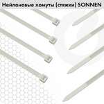 Стяжки (хомуты) нейлоновые сверхпрочные НАБОР 150 шт. (2,5х100/150 мм; 3,6х200 мм), белые, SONNEN, 607927
