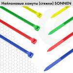 Стяжки (хомуты) нейлоновые сверхпрочные ЦВЕТНЫЕ в тубе 2,5х200 мм, КОМПЛЕКТ 200 шт., SONNEN, 607925