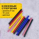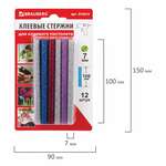Клеевые стержни, диаметр 7 мм, длина 100 мм, цветные (ассорти), С БЛЕСТКАМИ, КОМПЛЕКТ 12 шт., 6 цветов, BRAUBERG, 670319