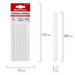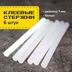 Клеевые стержни, диаметр 7 мм, длина 100 мм, белые, комплект 6 штук, BRAUBERG, европодвес, 670297