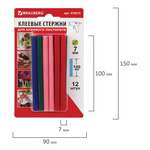Клеевые стержни, диаметр 7 мм, длина 100 мм, цветные (ассорти), КОМПЛЕКТ 12 шт., 6 цветов, BRAUBERG, блистер, 670315