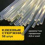 Клеевые стержни, диаметр 7 мм, длина 200 мм, прозрачные, 0,5 кг (58 шт.) BRAUBERG, 671054