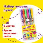 Ручки гелевые ЮНЛАНДИЯ, НАБОР 6 ЦВЕТОВ, НЕОН, корпус с печатью, узел 0,7 мм, линия письма 0,5 мм, 142804
