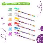 Ручки гелевые ЮНЛАНДИЯ, НАБОР 6 ЦВЕТОВ, БЛЕСТКИ, корпус с печатью, узел 0,7 мм, линия письма 0,5 мм, 142802