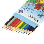 Карандаши цветные BRAUBERG "Бабочки", набор 12 цветов, трехгранные, корпус с полосками, 181285