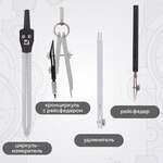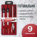 Готовальня BRAUBERG "Architect", 9 предметов: циркуль + измер + кронциркуль, рейсфедер + держатель, 2 вставки, удлинитель, грифель, 210353