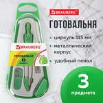 Готовальня BRAUBERG "Klasse", 3 предмета: циркуль 115 мм с колпачком, грифель, точилка, пенал с подвесом, 210330