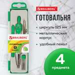 Готовальня BRAUBERG "Klasse", 4 предмета: циркуль 125 мм, рейсфедерная вставка + держатель, грифель, 210334