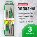 Готовальня BRAUBERG "Klasse", 3 предмета: циркуль 125 мм, точилка, грифель, пенал с подвесом, 210660