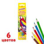 Карандаши цветные ЮНЛАНДИЯ "МИР ЖИВОТНЫХ", 6 цветов, классические заточенные, 181382