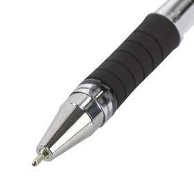 Модель изготовлена из высококачественных материалов, сменный стержень длиной 140 мм снабжен швейцарским игольчатым наконечником фирмы PREMEC и заправлен немецкими чернилами на масляной основе DOKUMENTAL черного цвета. Удобная прорезиненная зона захвата. Специальная технология "FEEL INK" гарантирует лёгкое и четкое письмо без каких-либо усилий. Диаметр пишущего узла 0,7 мм создает тонкую линию письма, равную 0,35 мм. Благодаря грипу удобство использования ручки возрастает в десятки раз. Прозрачный цвет корпуса с черными деталями соответствует классическому офисному стилю.