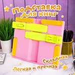Подставка для книг ЮНЛАНДИЯ, с боковыми зажимами, регулируемый наклон, пластик, розовая, 237907