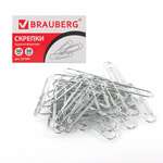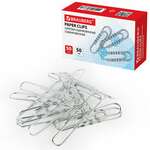Скрепки большие 50 мм, BRAUBERG, никелированные, 50 шт., в картонной коробке, РОССИЯ, 221525