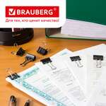 Зажимы для бумаг BRAUBERG, КОМПЛЕКТ 12 шт., 19 мм, на 60 листов, черные, картонная коробка, 220559