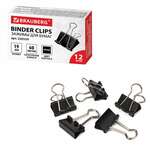 Зажимы для бумаг BRAUBERG, КОМПЛЕКТ 12 шт., 41 мм, на 200 листов, черные, картонная коробка, 221538