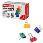 Зажимы для бумаг BRAUBERG, КОМПЛЕКТ 12 шт., 41 мм, на 200 листов, цветные, картонная коробка, 224473