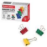 Зажимы для бумаг BRAUBERG, КОМПЛЕКТ 12 шт., 25 мм, на 100 листов, цветные, картонная коробка, 224471