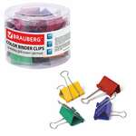 Зажимы для бумаг BRAUBERG, КОМПЛЕКТ 40 шт., 19 мм, на 60 листов, цветные, в пластиковом цилиндре, 221127